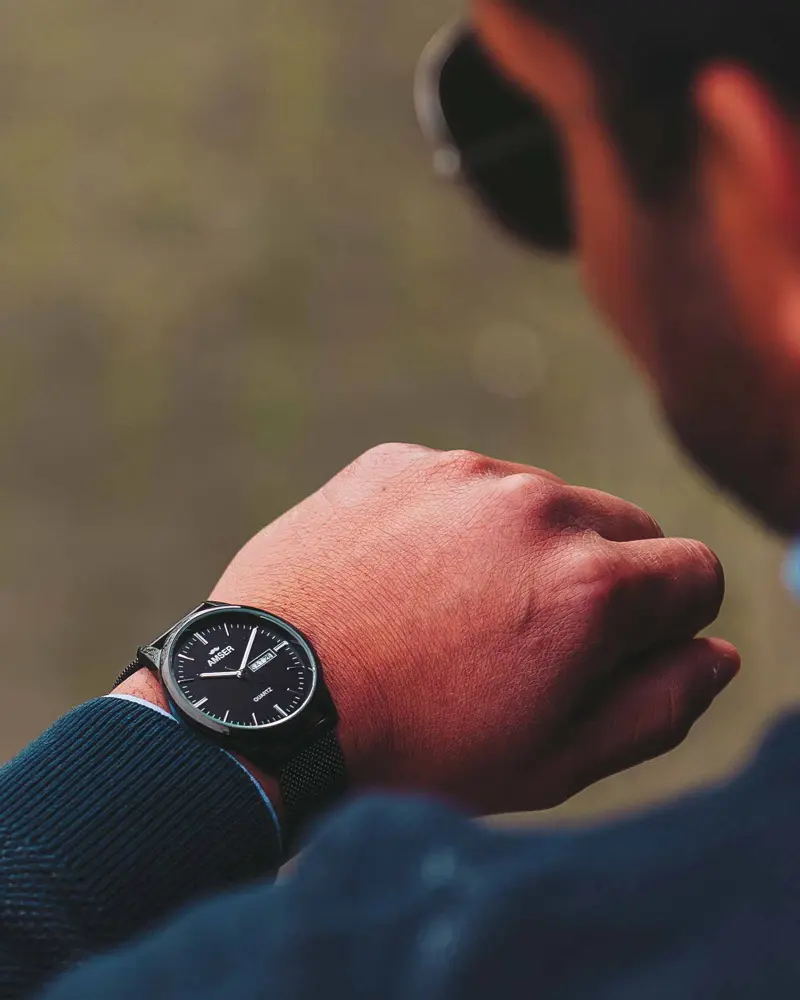 De 8040 is voorzien van een band van mesh staal en een legering kast, wat zorgt voor een tijdloze en toch eigentijdse uitstraling. Dit horloge heeft geen franje nodig om indruk te maken; zijn simplistische look spreekt voor zich.